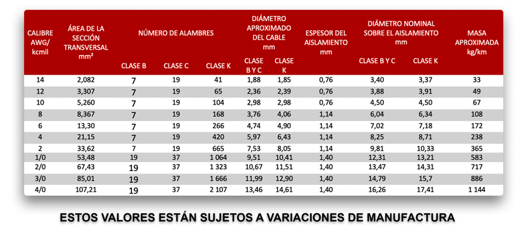 14 AWG a 4/0 AWG y mayores consultar al departamento técnico.