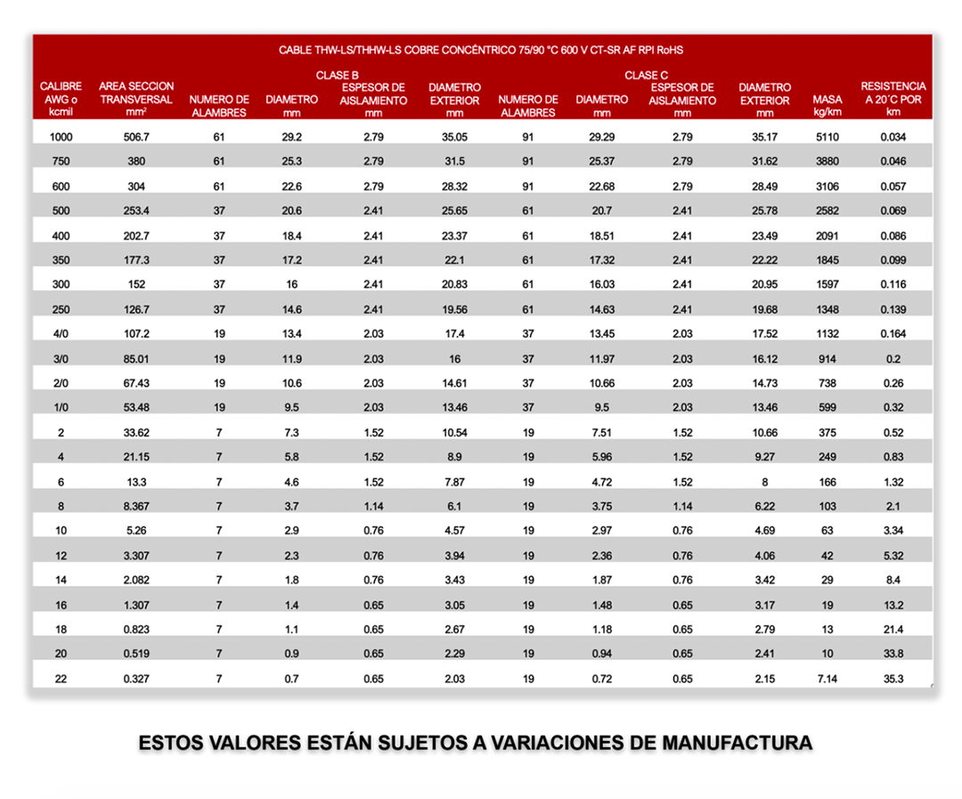 Conductor de cobre suave cableado concéntrico de Cobre electrolítico, 99.9% de pureza, con grandes propiedades mecánicas y eléctricas, con aislamiento termoplástico de Policloruro de Vinilo PVC-LS, con propiedades anti-flama, baja emisión de humos.