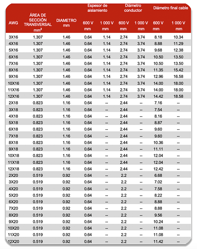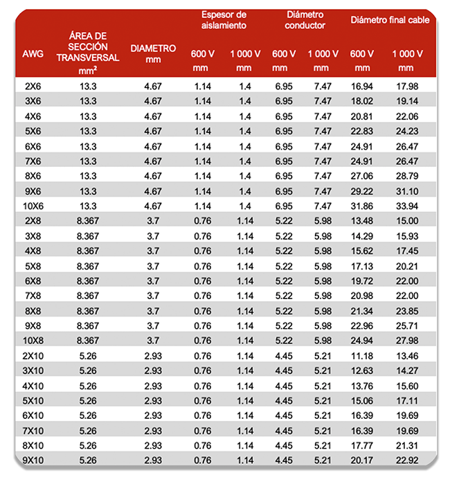 Según NMX-J-300-ANCE y milimétricos de sección y número de conductores.
